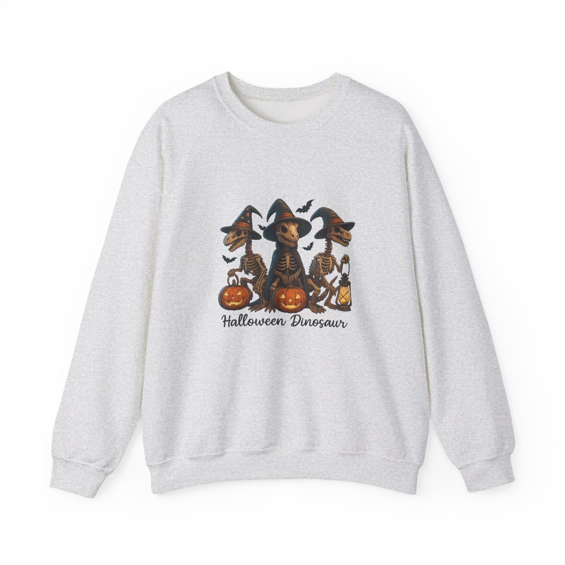 Unisex Heavy Blend™ Halloween Dinosaur Sweatshirt – Spooky Skeleton Dinos with Pumpkins | mw1023