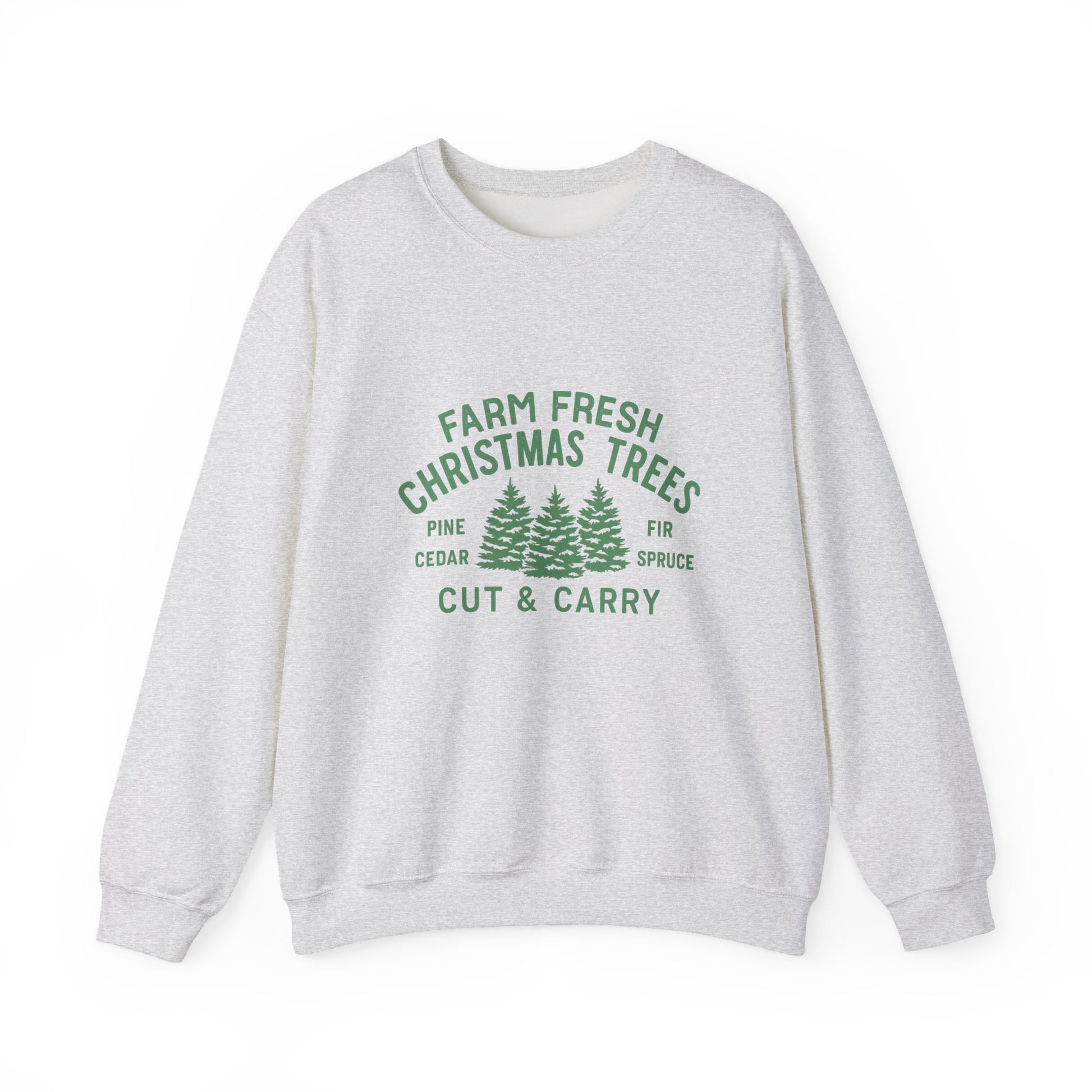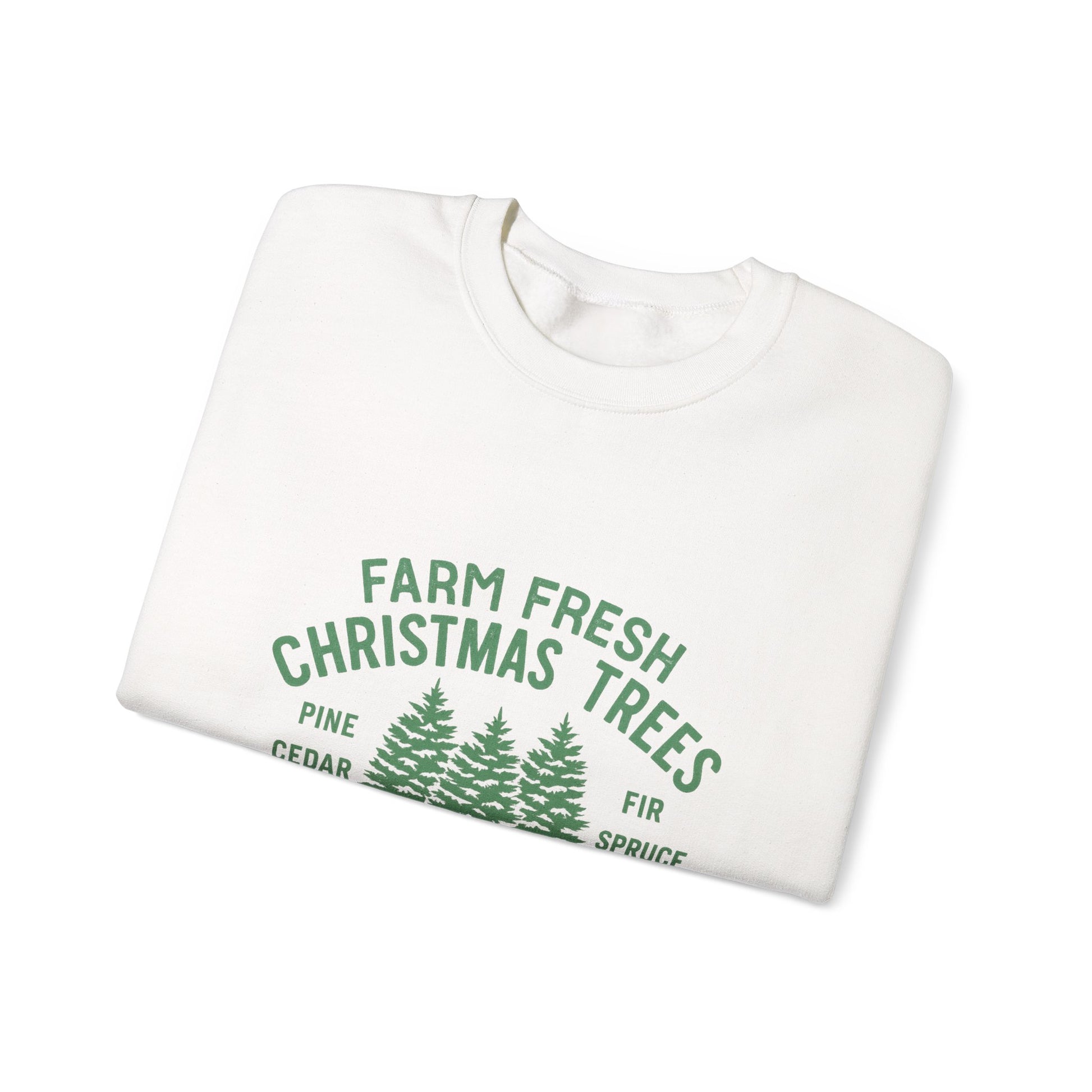Unisex Heavy Blend™ mw2024 | Farm Fresh Christmas Trees Sweatshirt – Rustic Holiday Pine & Fir Crewneck | Vintage Unisex Winter Gift