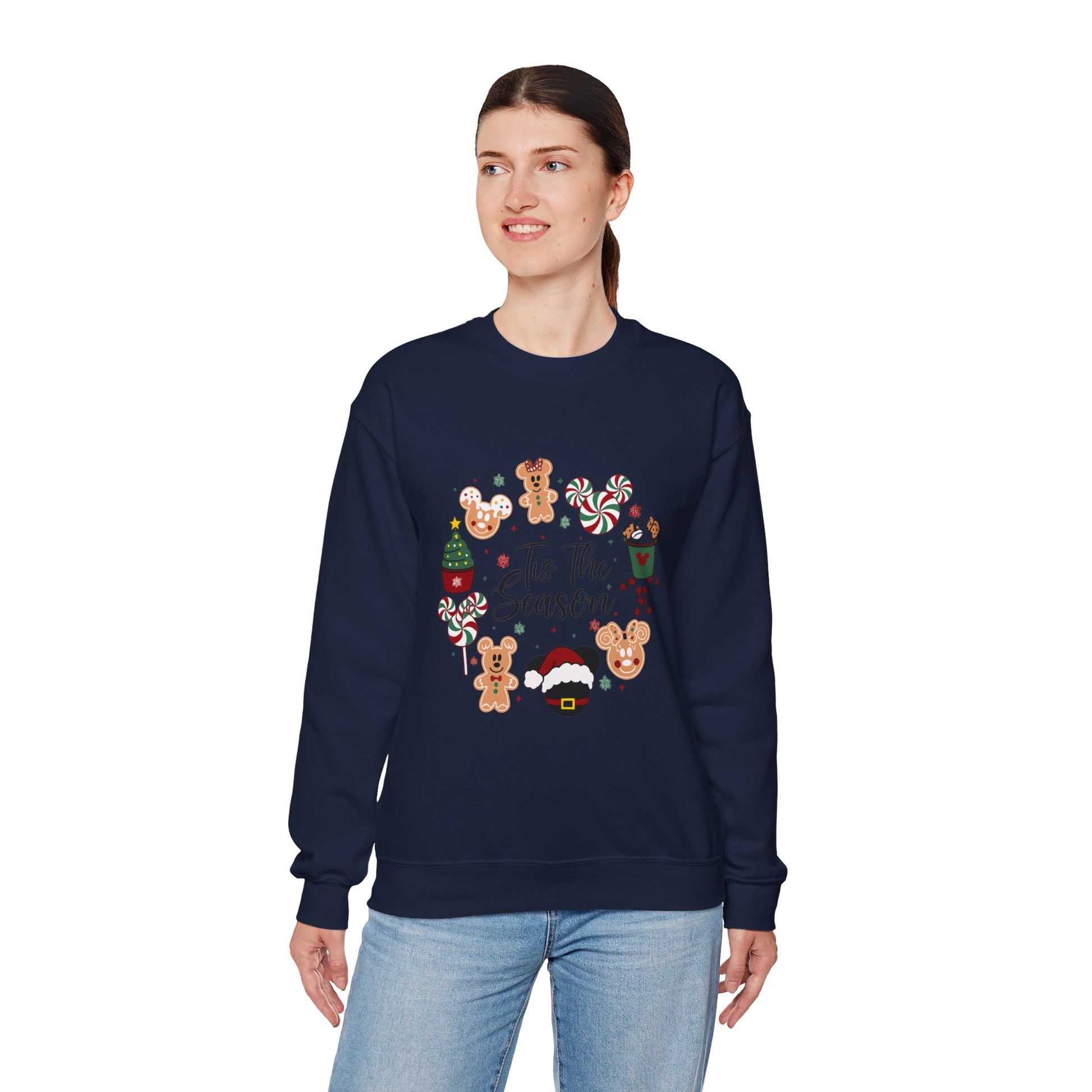 Unisex Heavy Blend™ mw2034 | Tis The Season Christmas Sweatshirt – Cute Gingerbread & Candy Holiday Crewneck | Cozy Unisex Winter Gift