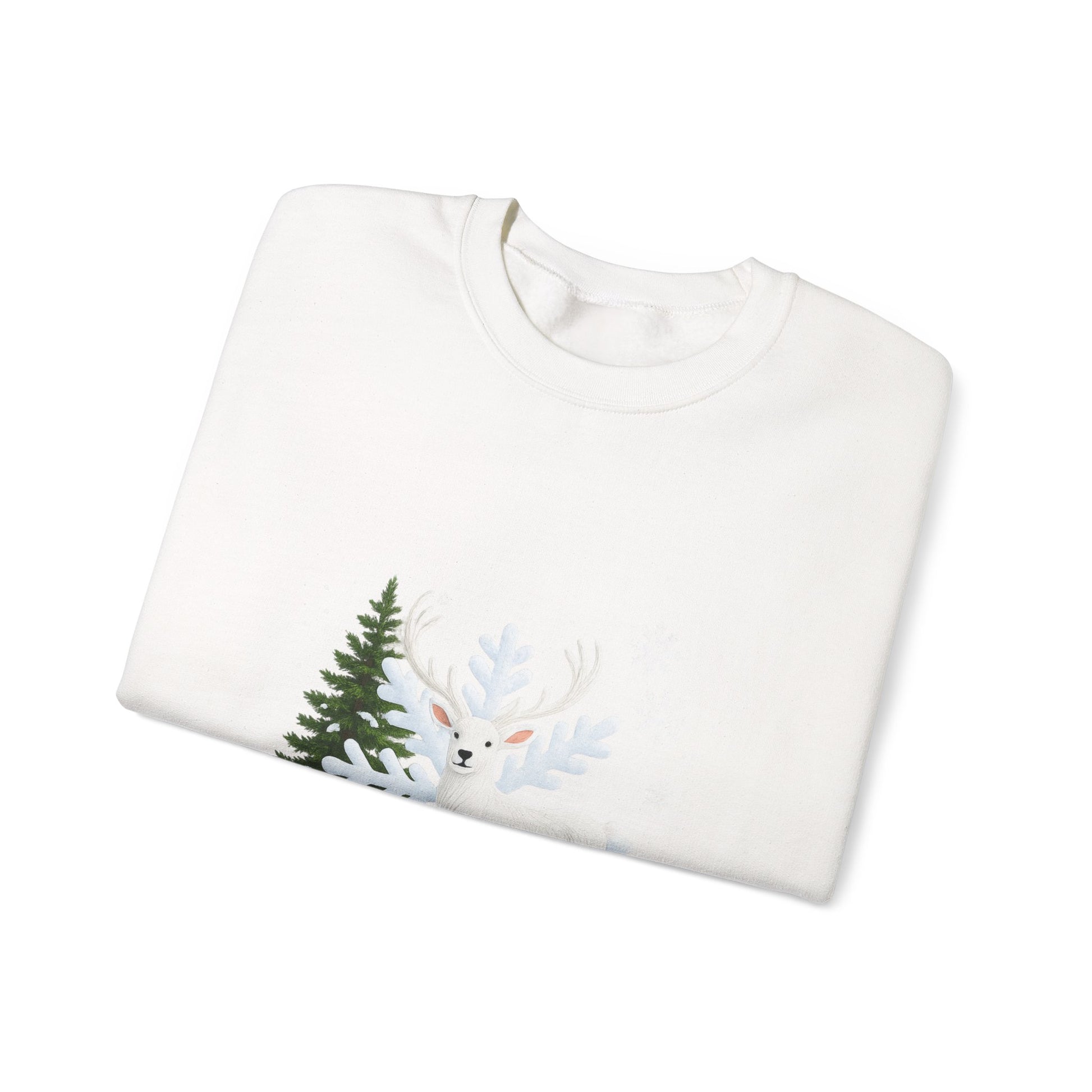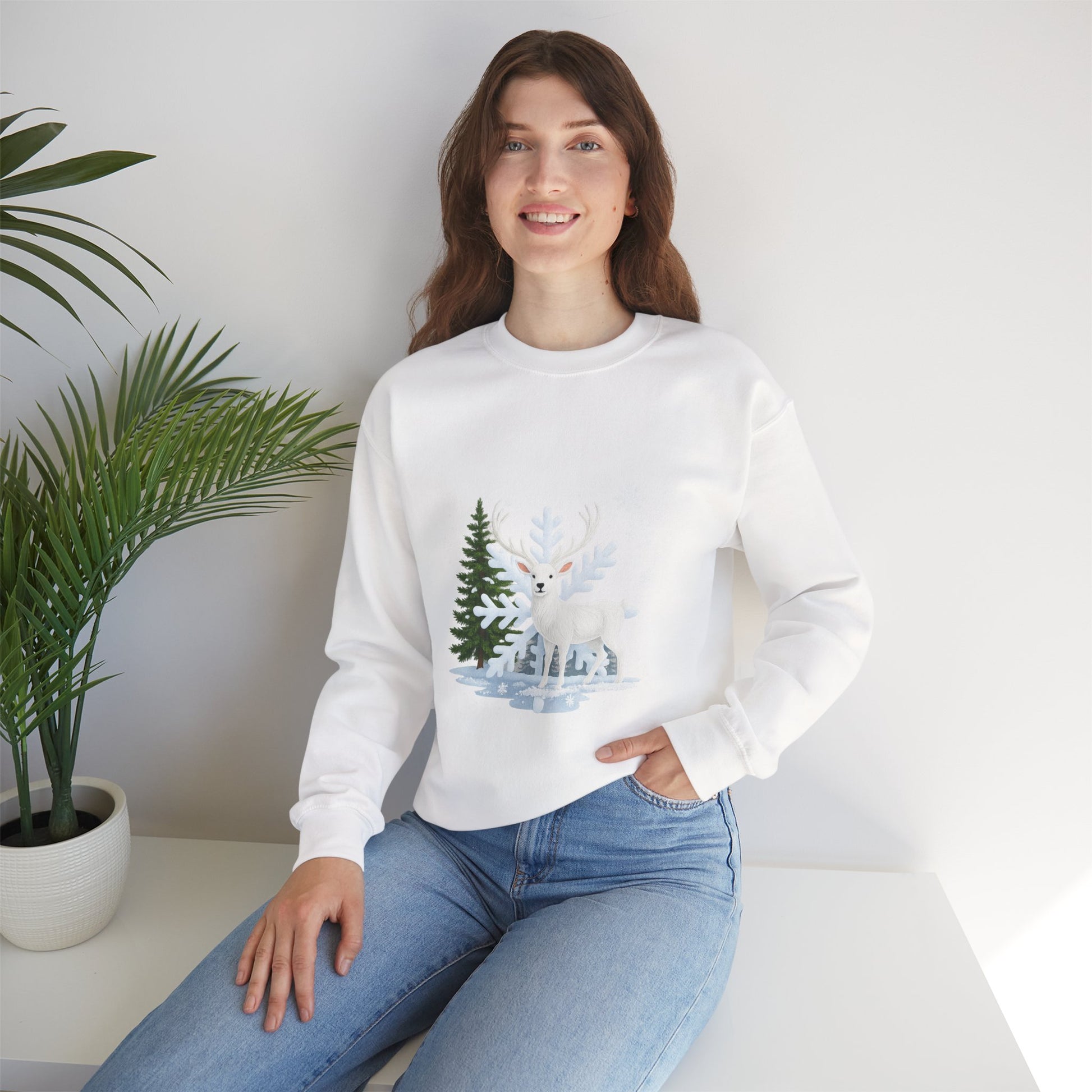 Unisex Heavy Blend™ mw2058 | White Reindeer Christmas Sweatshirt – Snowflake Winter Deer Crewneck, Festive Holiday Pullover Sweater