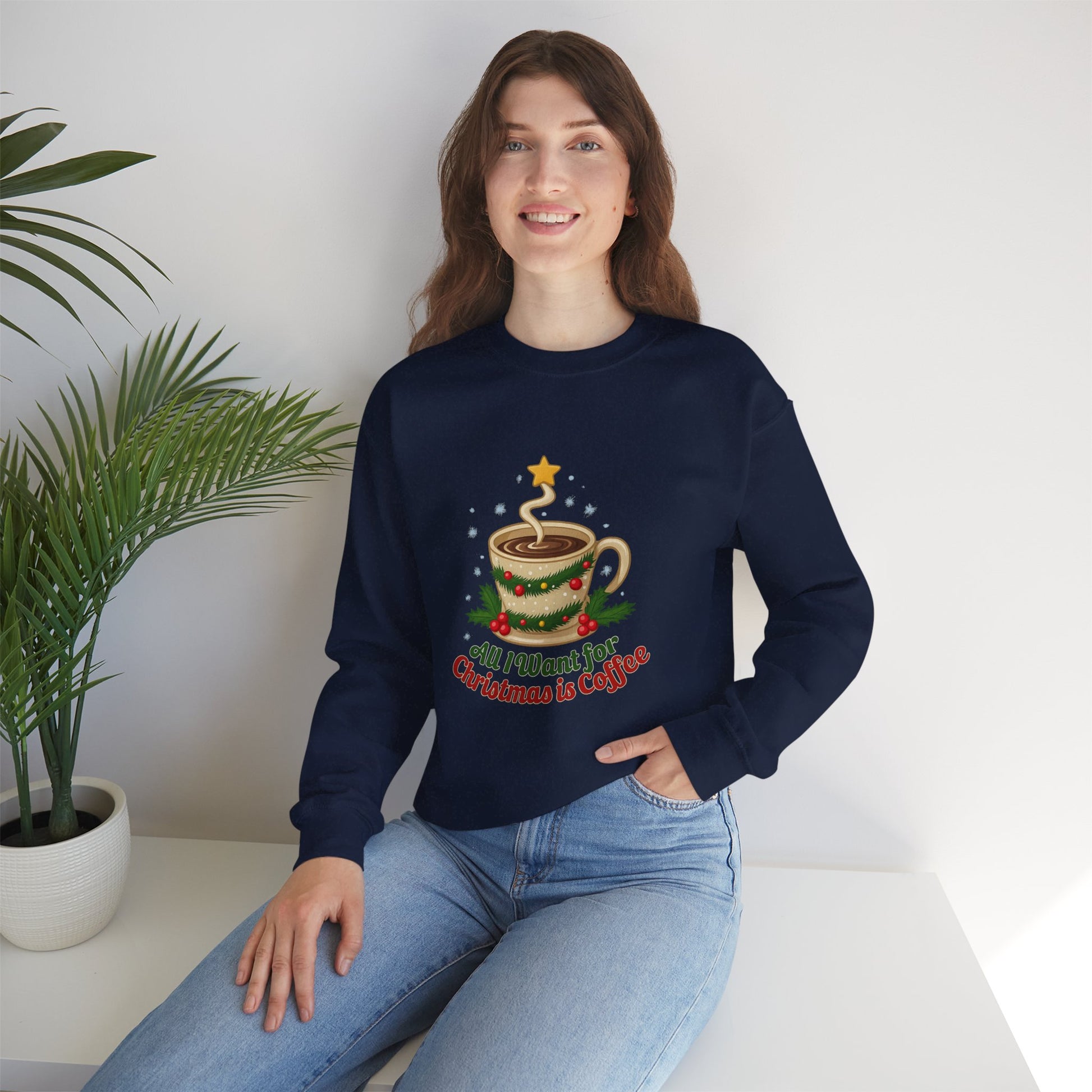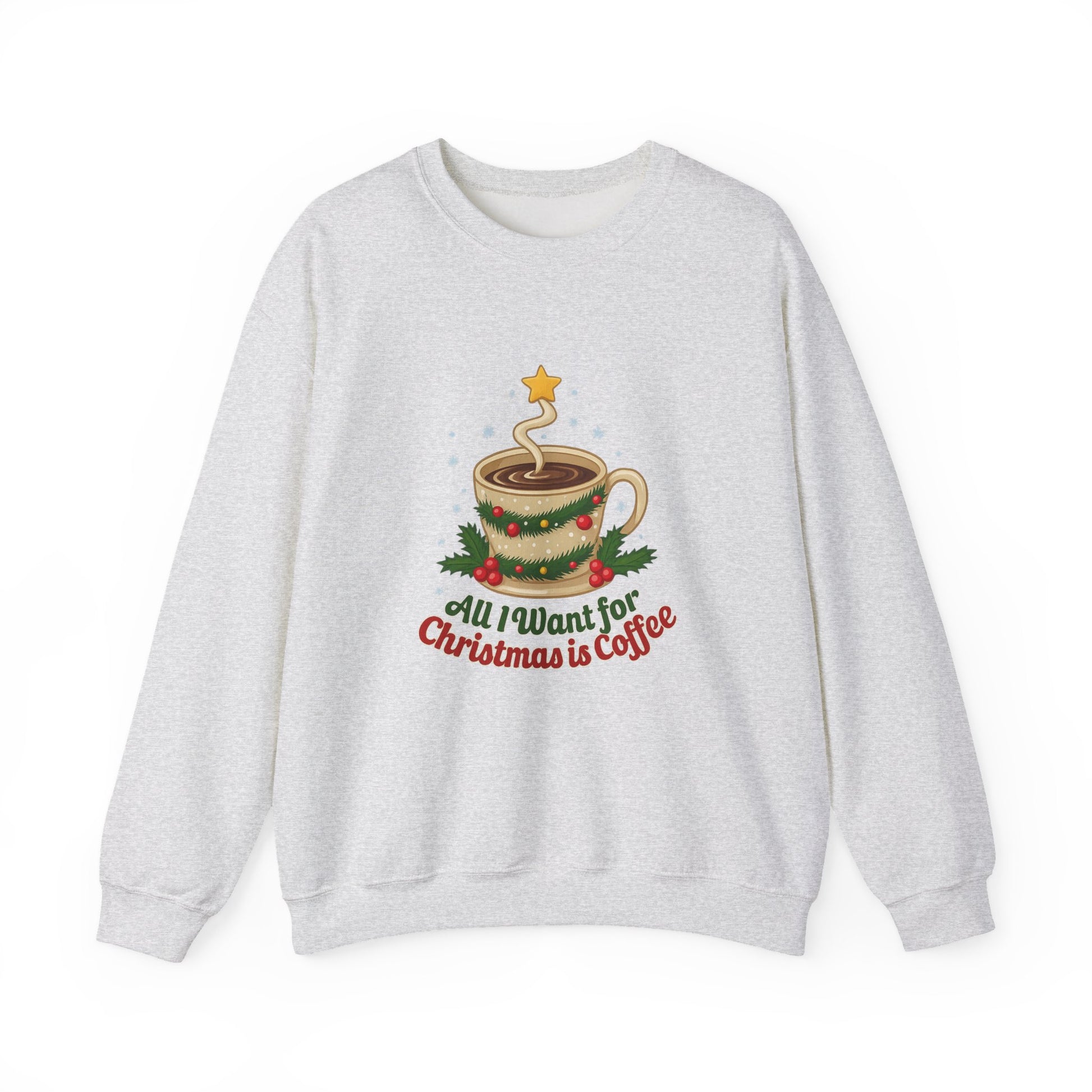 Unisex Heavy Blend™ mw2062 | All I Want for Christmas is Coffee Sweatshirt – Funny Holiday Coffee Lover Crewneck, Festive Winter Pullover