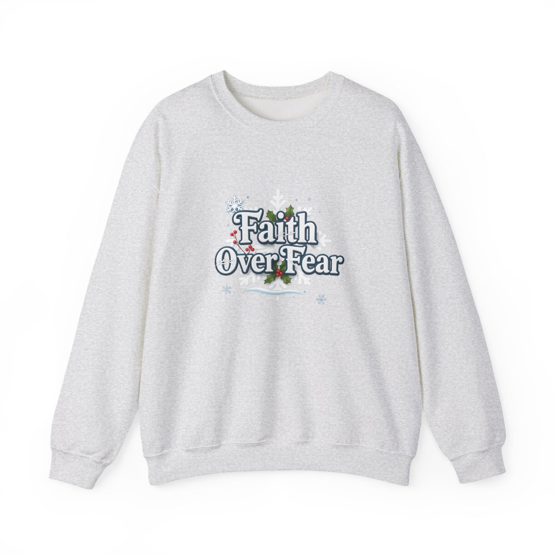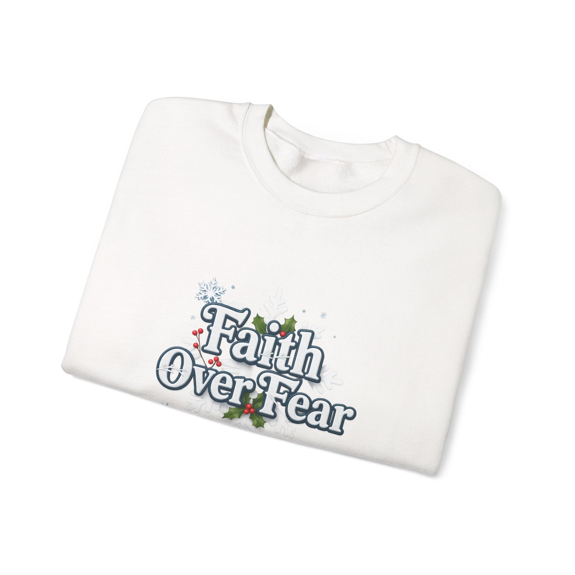 Unisex Heavy Blend™ mw2121 | Faith Over Fear Christian Christmas Sweatshirt – Inspirational Holiday Crewneck, Religious Winter Gift