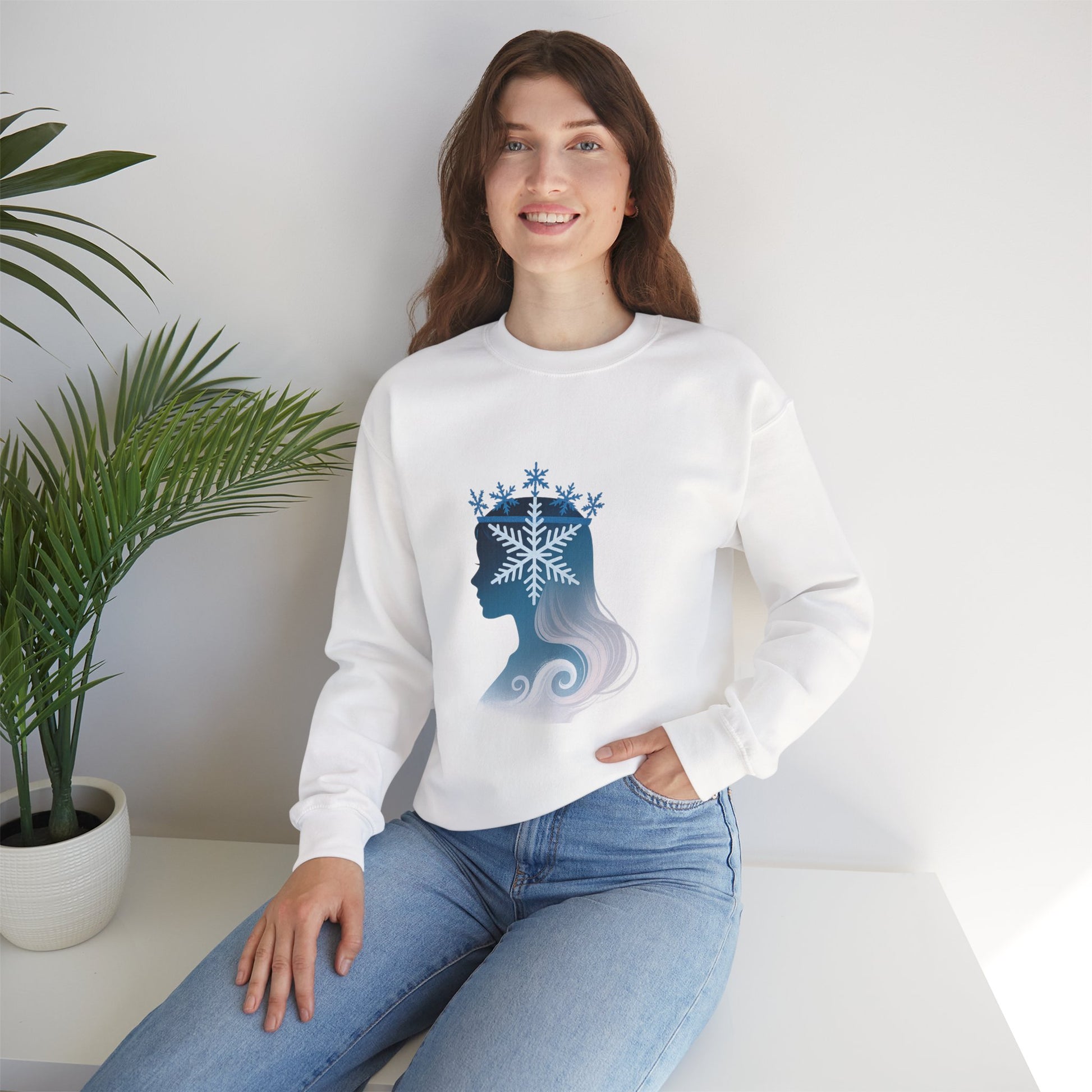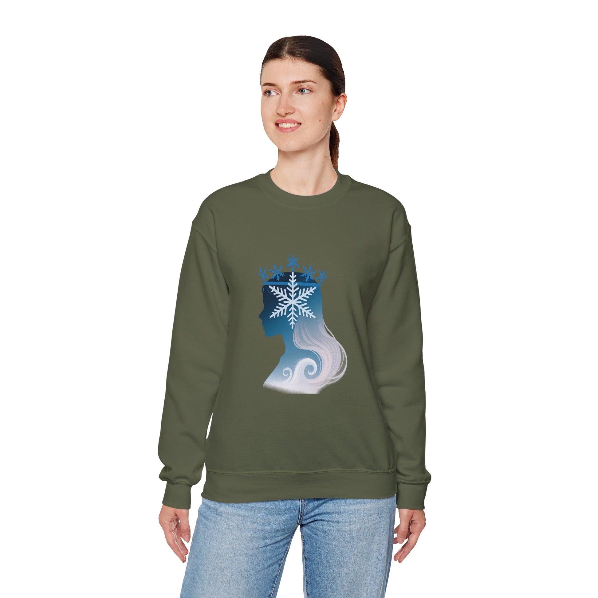 Unisex Heavy Blend™ mw2138 | Snow Queen Silhouette Sweatshirt – Elegant Winter Snowflake Crown Crewneck, Cozy Holiday Gift