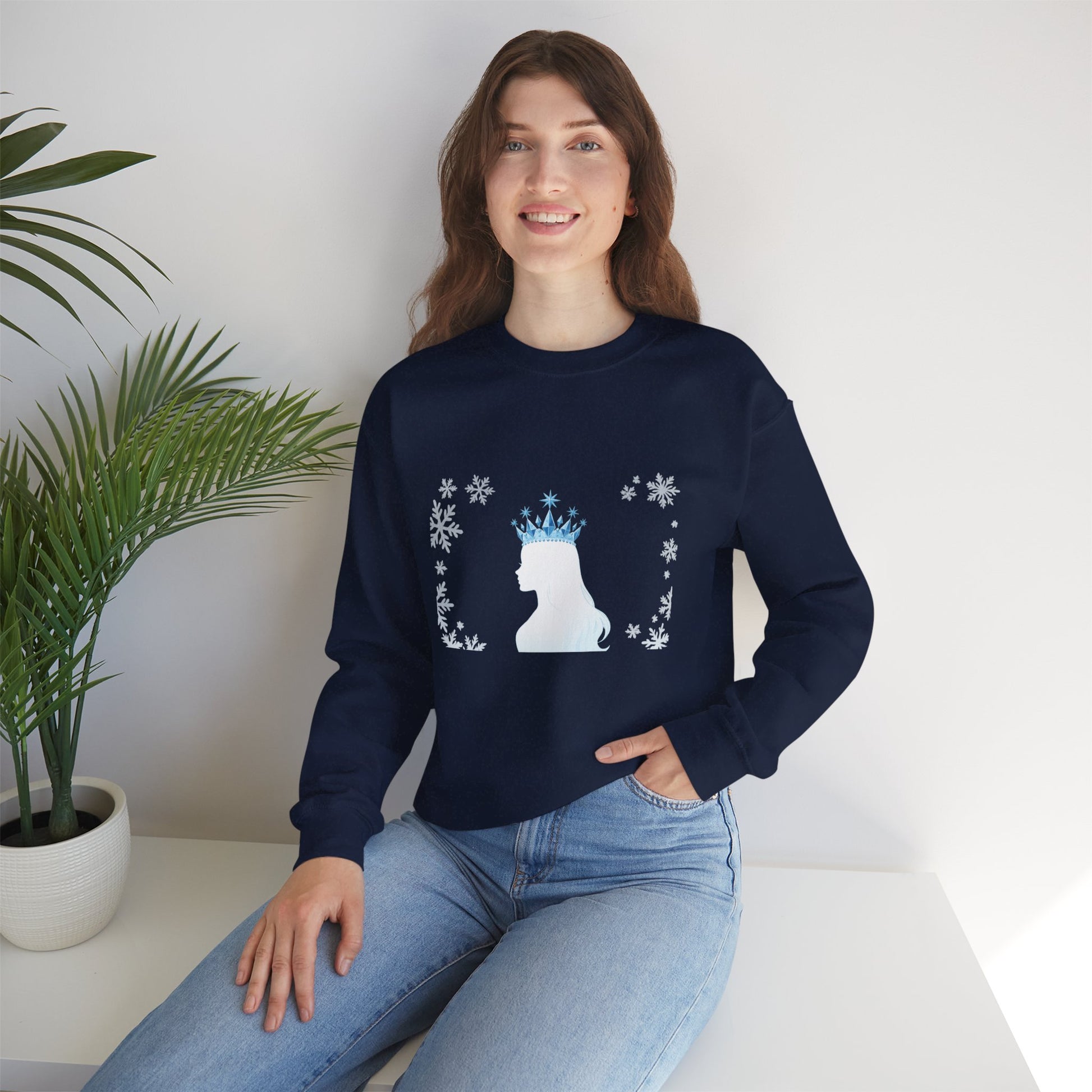 Unisex Heavy Blend™ mw2140 | Ice Queen Silhouette Sweatshirt – Elegant Snowflake Winter Crown Crewneck, Cozy Holiday Gift