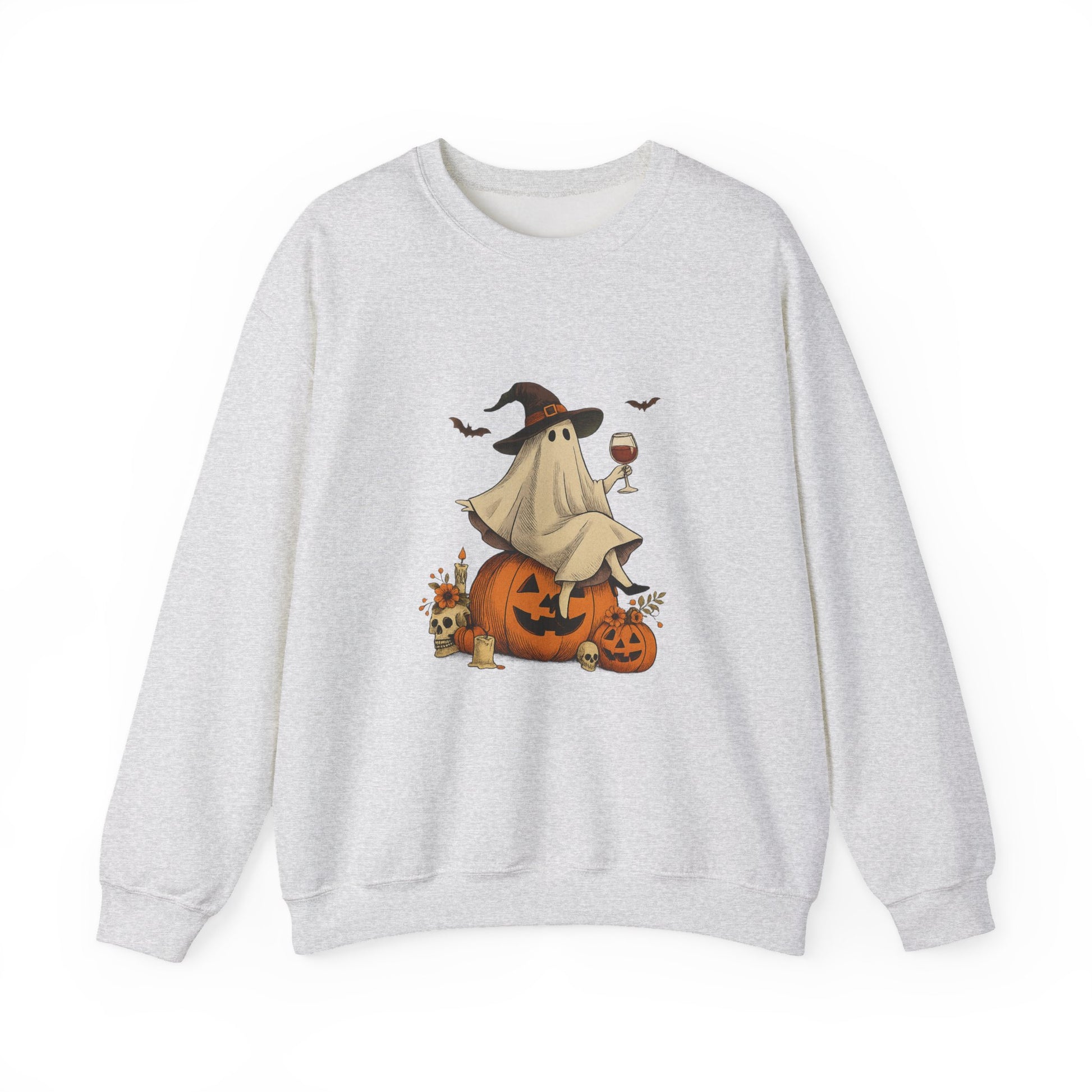 Unisex Heavy Blend™ Wine Ghost Halloween Sweatshirt – Spooky Season Pumpkin Crewneck | mw1013